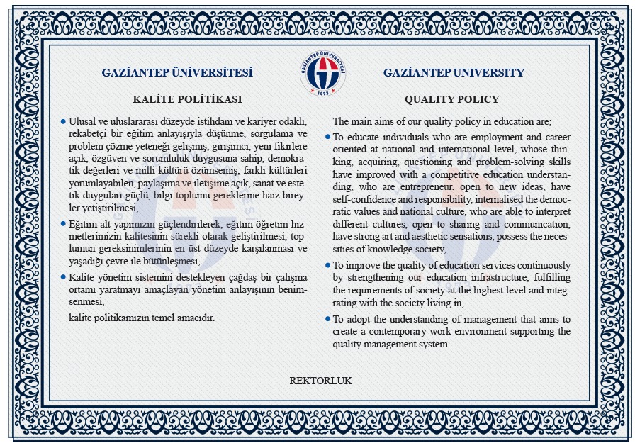 Gaziantep Üniversitesi olarak internet sitemizde çeşitli çerezler kullanmaktayız. Söz konusu çerezler sayfanın sağlıklı çalışması ve daha iyi bir ziyaretçi deneyimi sunmak için zorunlu olarak kullanılmaktadır. GAÜN Kişisel Verilerin Korunması Bilgilendirme | TAMAM |